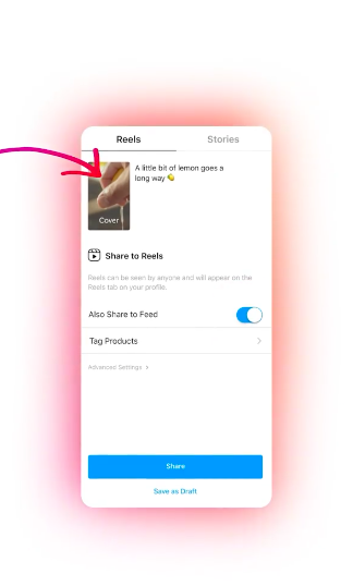 2. Делитесь своей лентой и выбирайте изображение обложки, чтобы побудить зрителей посмотреть ваше видео. Доступны: