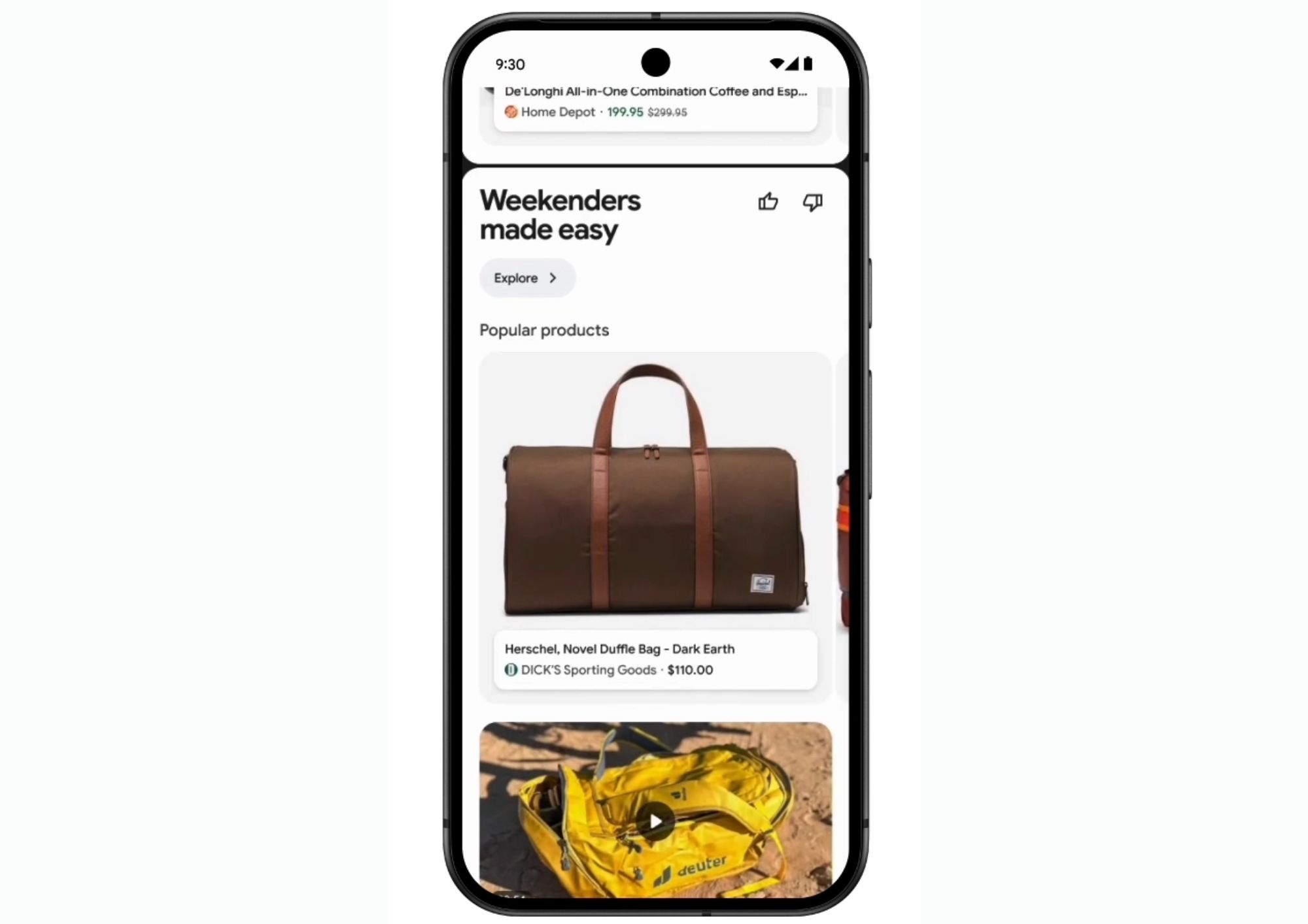 - Отображение релевантных товаров. Теперь пользователи получают краткое описание, сгенерированное ИИ, с аргументами, почему именно этот товар подходит лучше всего. Результаты также содержат расширенные фильтры: например, поиск за нужным размером, цветом или товарами, которые есть в наличии рядом.