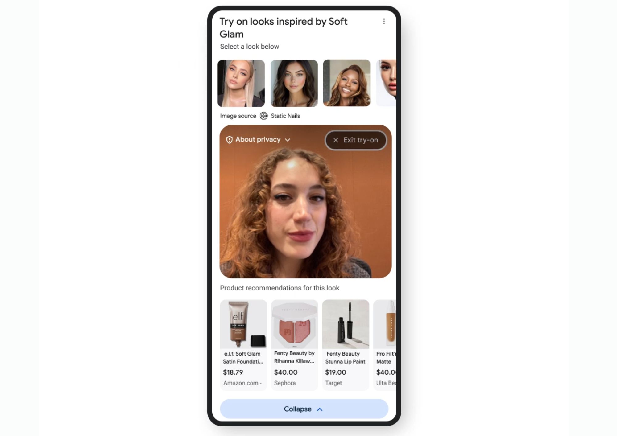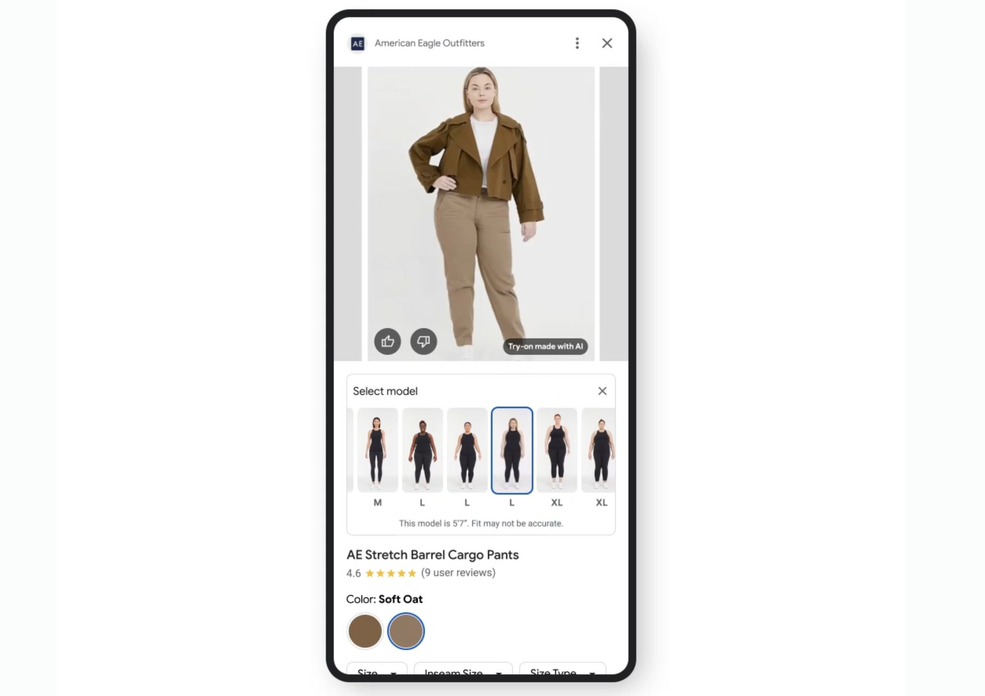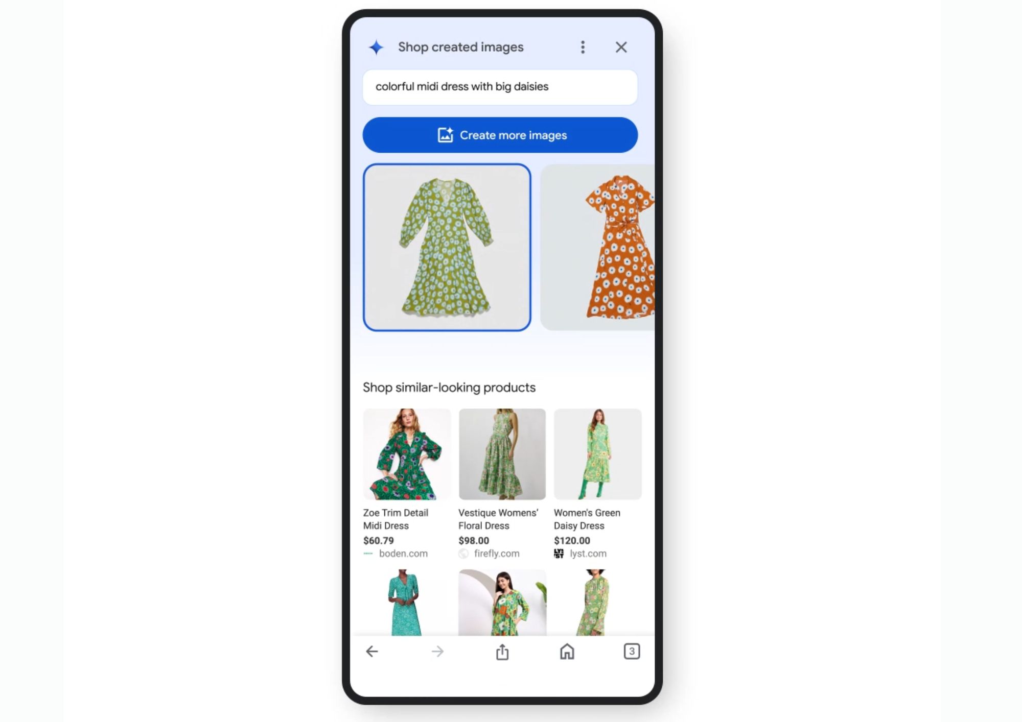 - Пользователи мобильных устройств в США могут воспользоваться функцией «сопоставления». Необходимо ввести промпт и описать одежду, которую вы ищете. Далее ИИ сгенерирует изображение на основе запроса и предложит реальные похожие товары, которые можно приобрести.