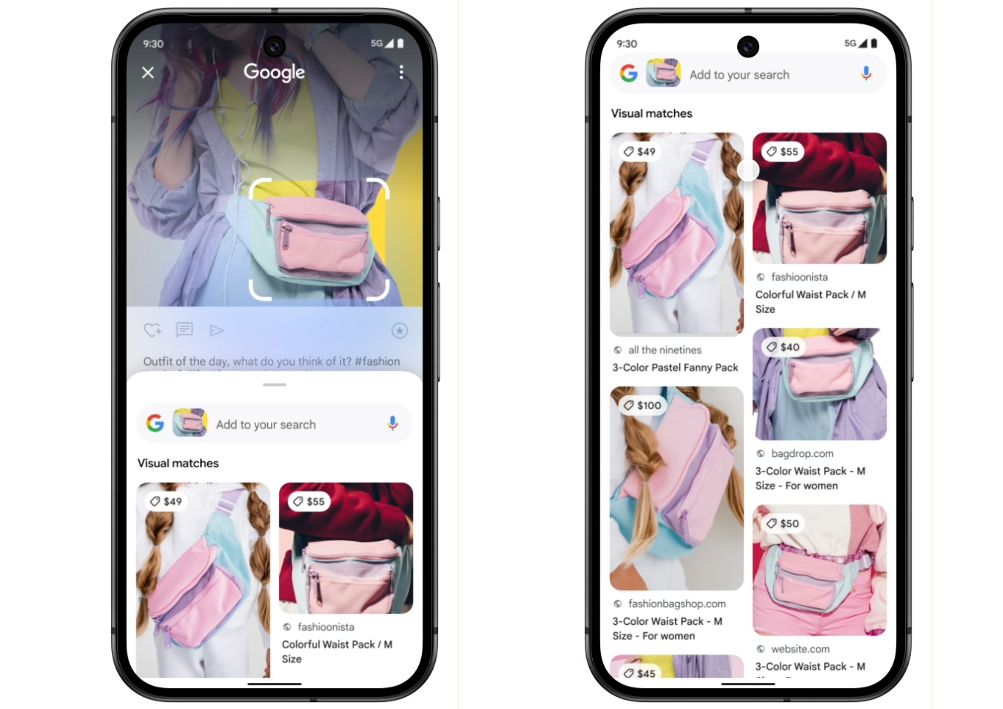 - Multisearch — поиск товаров с помощью текста и изображения одновременно. Сделайте фотографию с помощью Lens и добавьте ключевые слова, чтобы сузить поиск.