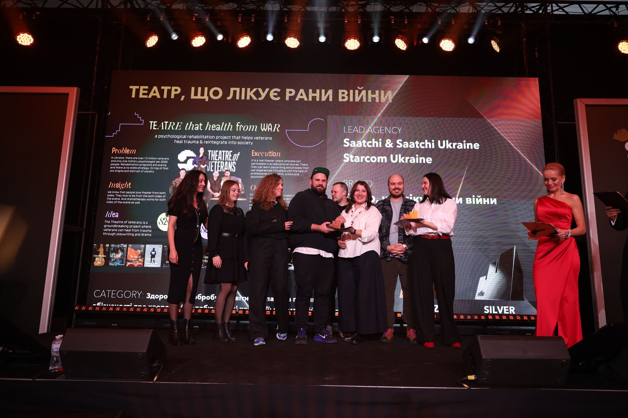 В номинации «Малобюджетные кампании: некоммерческие организации» серебро получил культурно-социальный проект «Театр ветеранів». Без медиабюджета он охватил более 10 000 зрителей, получил упоминания в ведущих СМИ и создал устойчивую модель психологической поддержки, которую можно масштабировать как в Украине, так и за ее пределами.