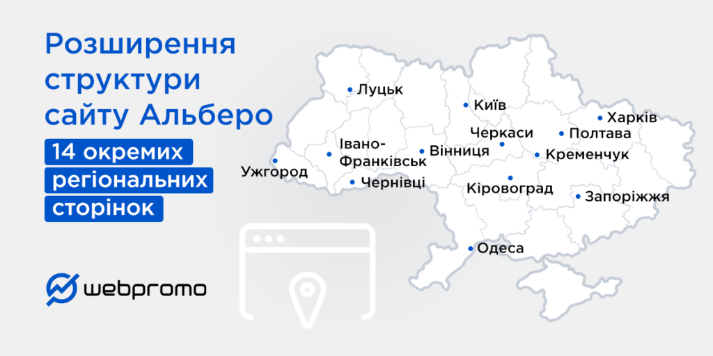Забегая вперед, за 8 месяцев работы над проектом, нам удалось расширить структуру еще на 300 страниц. Мы учли, что у Альберо есть салоны в более чем 20 городах, поэтому для 14 из них создали отдельные региональные страницы.