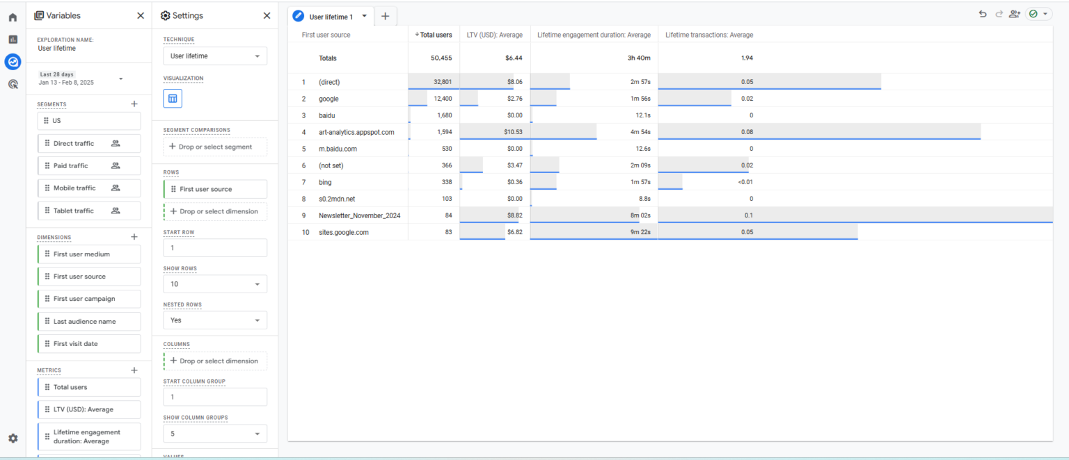 Пример отчета LTV, что позволяет оценить финансовую ценность пользователей на протяжении всего периода их взаимодействия с бизнесом