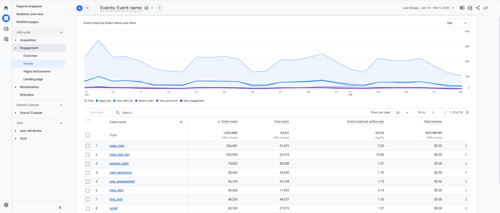 Google Analytics 4 перешел от концепции «целей» к событиям. Настройте кастомные события, которые помогут лучше понять вашу аудиторию: просмотр видео, скроллинг страницы, время на сайте, загрузка файлов, клик на кнопку, добавление товара в корзину и т.д. Это позволяет детальнее анализировать поведение пользователей.