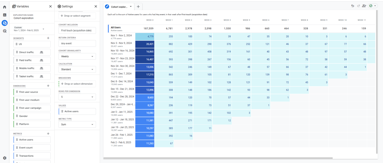 GA4 позволяет создавать динамические аудитории на основе действий пользователей. Например, вы можете отдельно анализировать:
