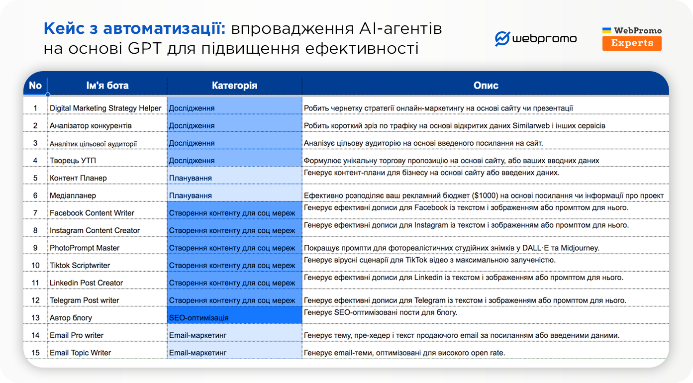 Я використовую GPT не тільки як власного асистента з аналітики, а й для закриття багатьох задач. ШІ швидко знаходить відповіді на типові запити, структурує великі обсяги даних і робить чернетки звітів. Завдяки правильному налаштуванню, економія часу становить 5–15 годин на тиждень лише на аналітиці, ресьорчі та підготовці матеріалів.
