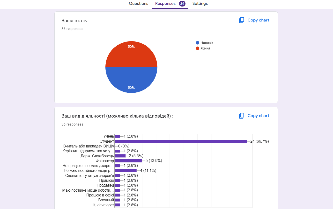 Як скопіювати діаграму з Ґуґл Forms в Ворд?