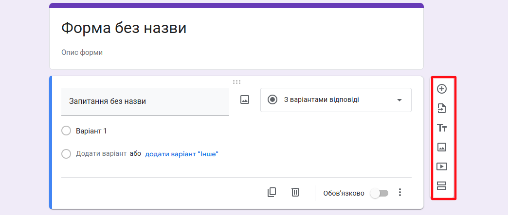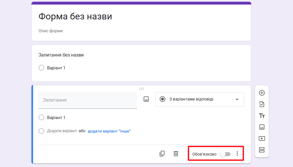 Не забудьте вказати, чи обов’язково потрібно давати відповідь. Користувач не зможе надіслати форму, якщо не заповнив відповіді на обов’язкові питання.
