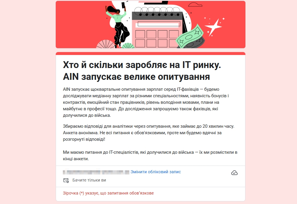 Приклад Ґуґл Форми для проведення опитувань і дослідження ринку