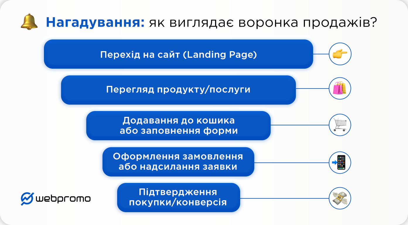 - оцінка ефективності кожного етапу воронки для подальшої оптимізації маркетингових активностей;